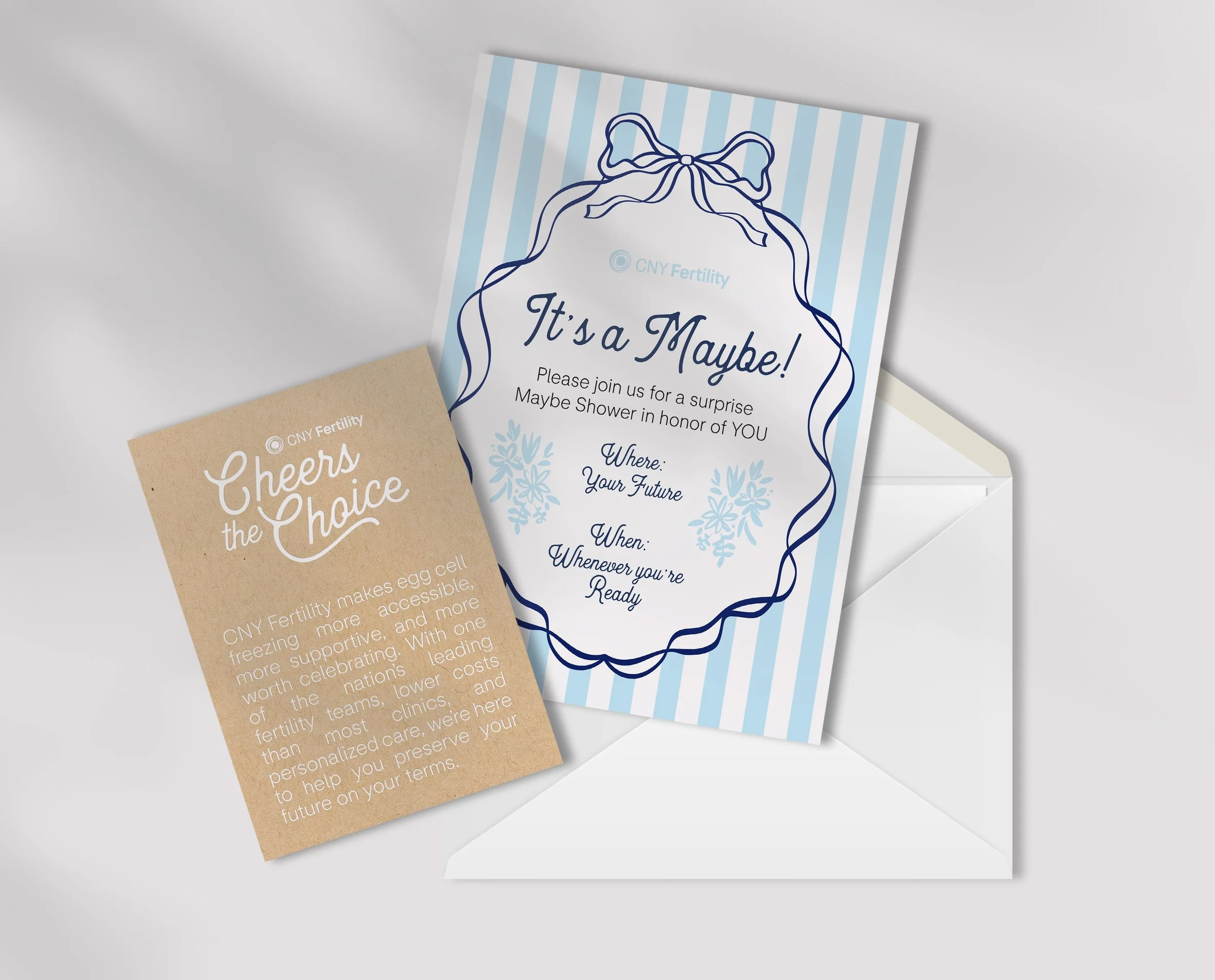 CNY Fertility sends luxe direct mail invitations, inviting women to their own future Maybe Shower.