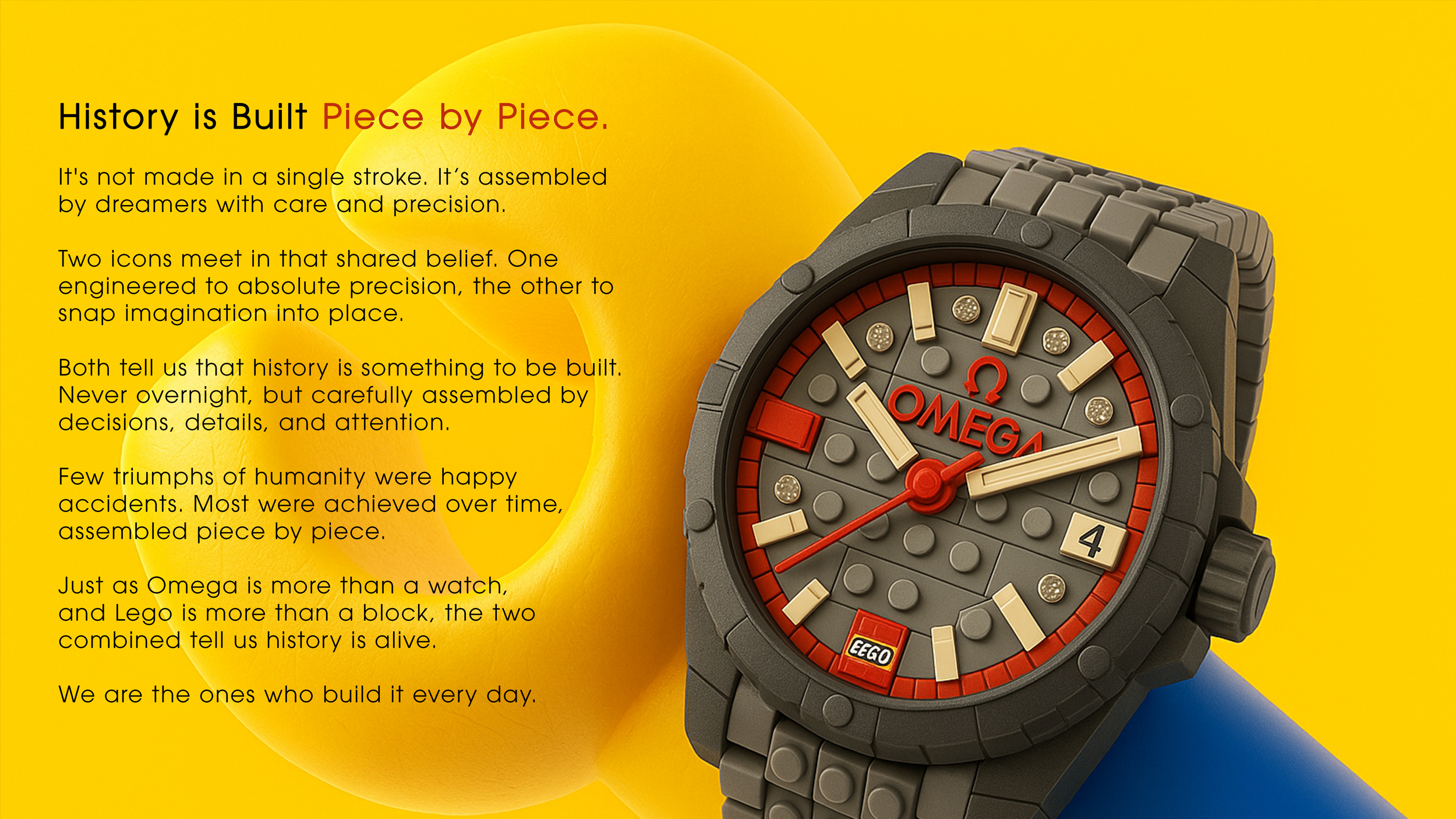 So we partnered with LEGO to create The LEGOmega Timepieces: a collection that reminds the next generation that prestige isn’t just worn. It’s built.