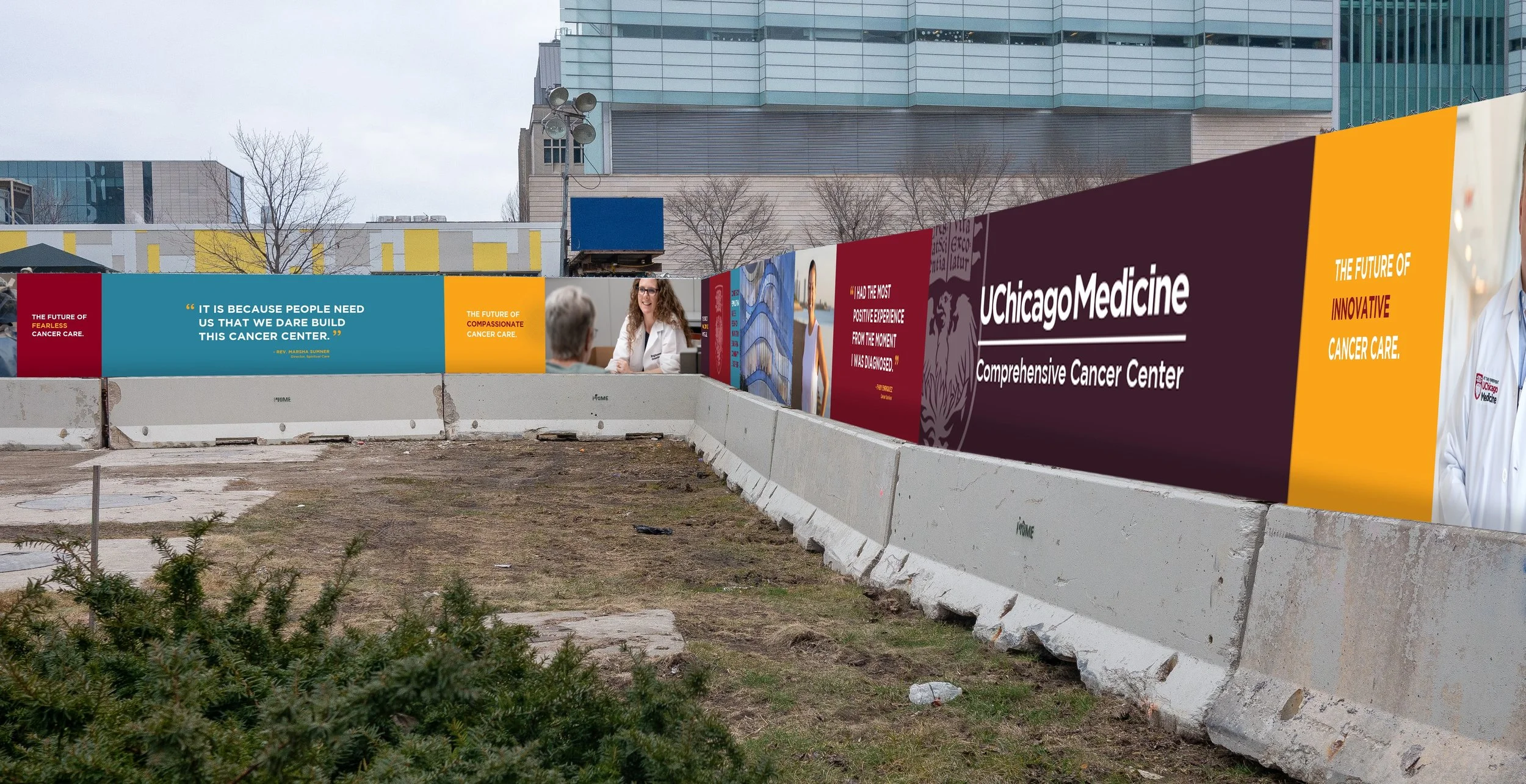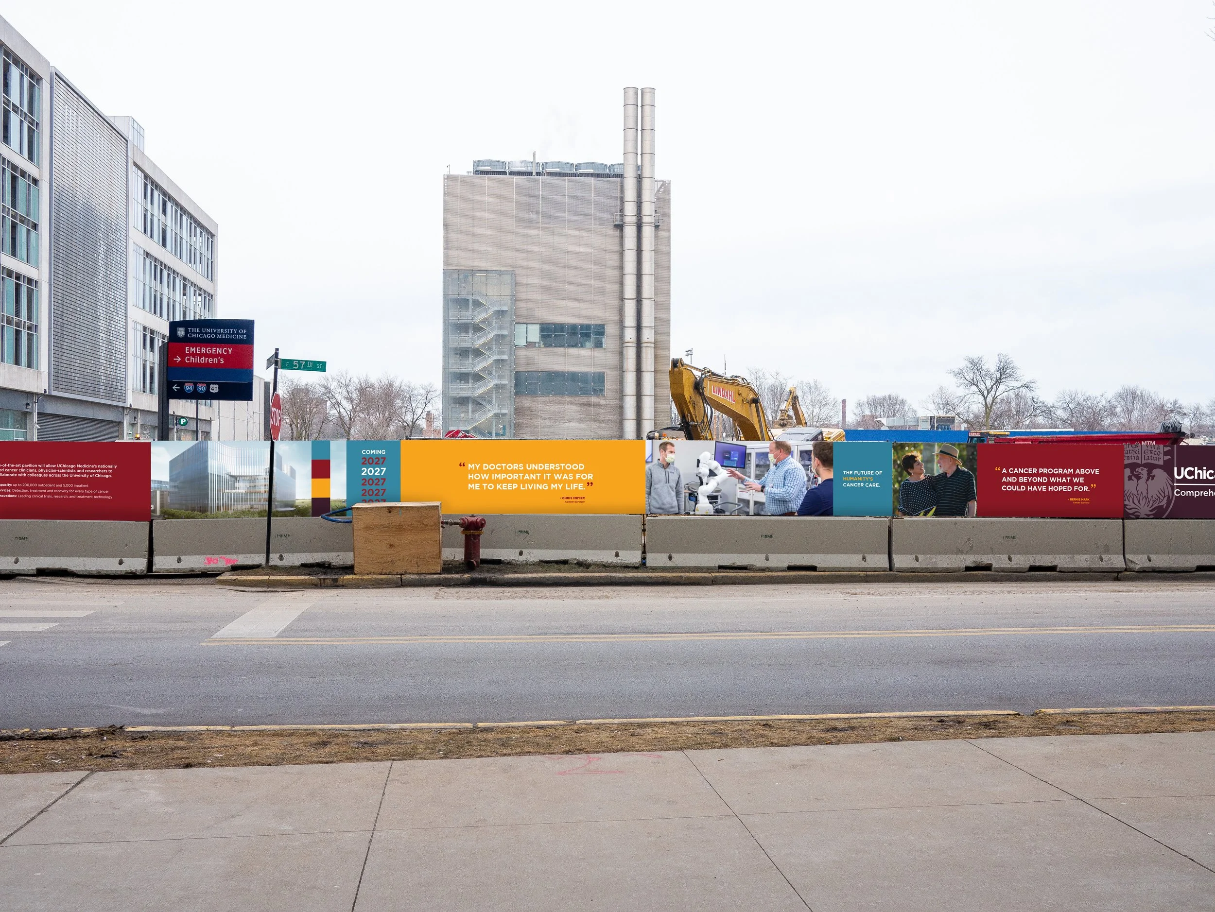 They were building a crazy nice cancer pavilion on the UChicago campus. So how do you make a construction site look good? Cover it up!