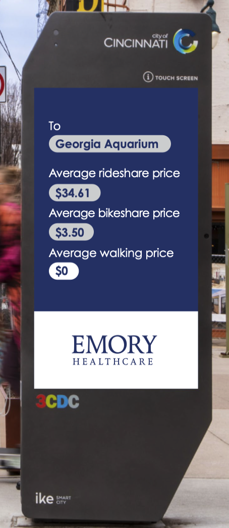 We pitched an interactive street kiosk packed with gadgets. It calculated the real-time cost of a rideshare & bikeshare to Atlanta’s hottest spots, updating every hour to remind passersby exactly how much they’d save (and how much healthier they’d be) by choosing the heart-friendly way to get there.