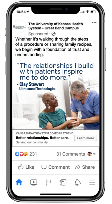 How do you show a care team that’s connected to their patients like no one else? Well, by showing it. I sat through hours and hours of interview recordings to pull out kernels of potential stories to make ads. And a little (or a lot) embellishment here and there (or most places) never hurt.